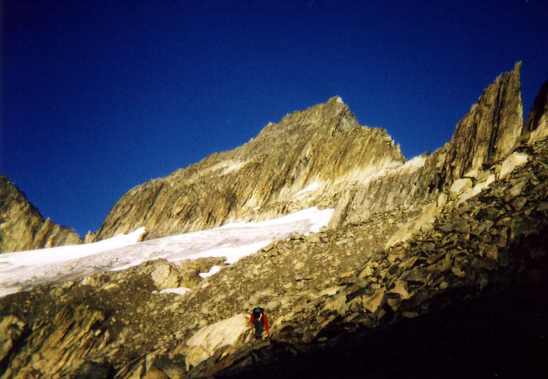 der Ostgrat zum Teil recht anspruchsvoll auf den - für dortige Verhältnisse