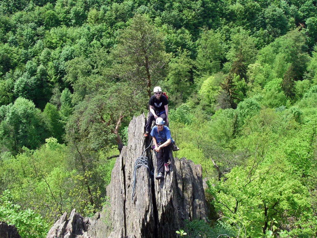 und Kletterspaß kennzeichnen einen Klettertag am Kirchfels.